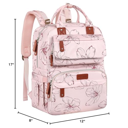 Diaper Bag Backpack, Baby Girl Diaper Bag for Mom, Large Pink Floral Diaper Bag Backpack for Girls, Waterproof Mom Backpack for Work Travel Holiday with Insulated Pockets and Stroller Straps