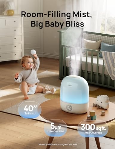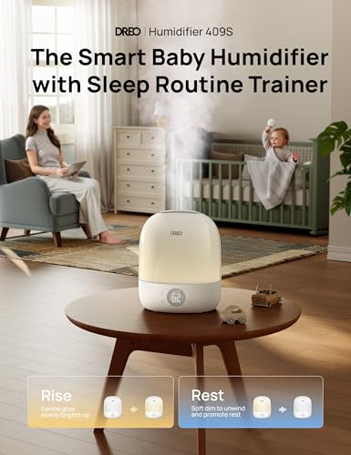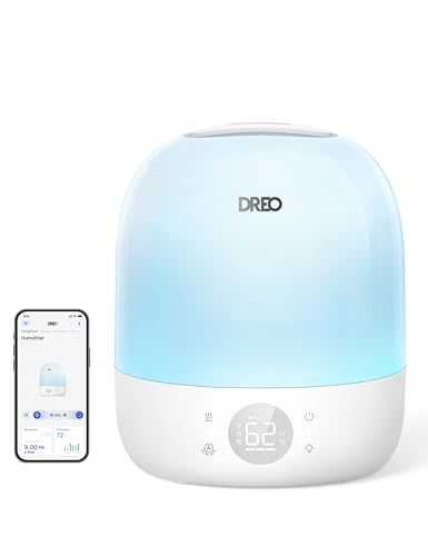 DREO Smart Humidifiers for Bedroom Baby HM409S, 1500+ RGB Night Light & Sleep Routine Trainer, Ultra Quiet 28dB & 3L Top Fill Cool Mist Humidifier for Nursery, Air humidifier for Plants Indoor