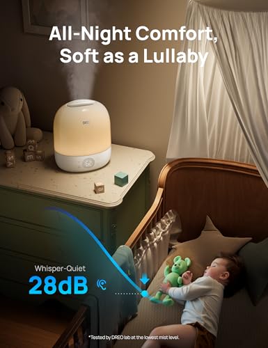 𝘼 𝙁𝙪𝙡𝙡 𝙉𝙞𝙜𝙝𝙩 𝙤𝙛 𝙍𝙚𝙨𝙩𝙛𝙪𝙡 𝙎𝙡𝙚𝙚𝙥: 28dB whisper-quiet performance is ideal for baby and nursery, and you can monitor and adjust humidity remotely via the DREO app or Alexa voice commands to avoid late-night visits.