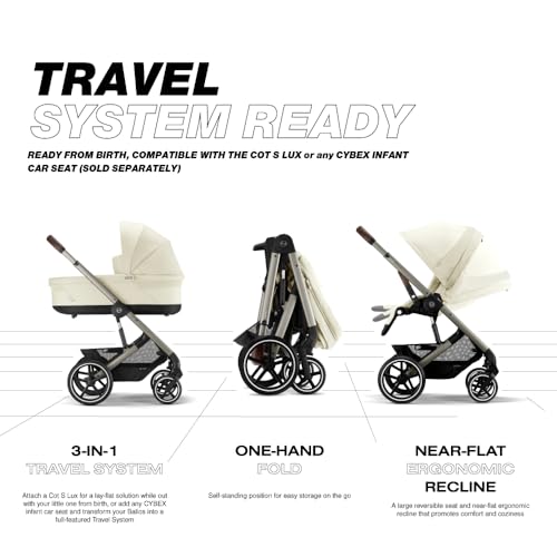 Cybex Balios S Lux Toddler and Baby Stroller with Reversible Seat, Unique One-Pull Harness, and Multiple Recline – Travel System Ready, with One Hand Fold, Taupe Frame/Seashell Beige Seat