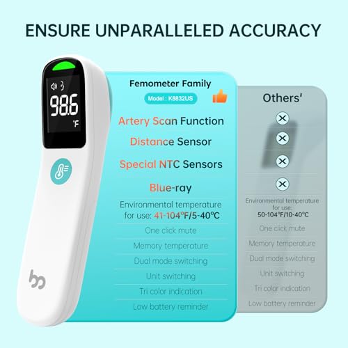 Accurate & Fast – The femometer family No-Touch Forehead Thermometer with advanced infrared technology, through the arterial scan, for a quick & accurate 1 sec test, is ideal for all ages.