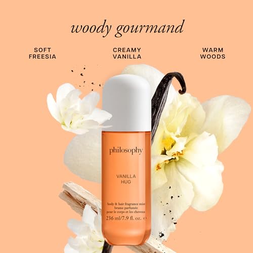 philosophy hair and body mists – long-lasting fragrance mists for women with skin-loving ingredients – hydrates & refreshes for 24 hours – vanilla, pistachio & coconut scent options