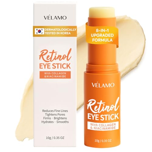 Upgraded Formula · Made in Korea · Larger Size · Travel Essentials: Introducing the new VELAMO ADVANCED Retinol Eye Balm Stick, powered by advanced Korean skincare technology. Now with an upgraded 8-in-1 formula and an expanded 10g (0.35oz) value size, delivering longer-lasting use and visible improvements. This travel-friendly eye cream stick was designed for swipe-and-go application, portable & perfect for On-the-go use, streamlining your skincare routine wherever you are. You will fall in love with this Travel Essentials.