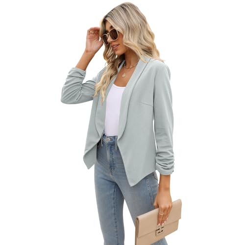 POGTMM Women 3/4 Sleeve Blazer Open Front Cardigan Jacket Work Office Blazer