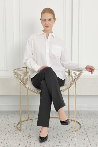 Bamans Dress Pants Women Work Business Pants Tummy Control Office Straight Leg Trousers High Waisted Ladies Slacks