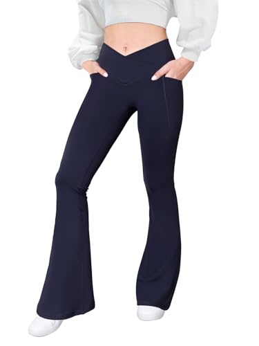 Flare Leggings with Pockets for Women Seamless Crossover Yoga Pants with Tummy Control Bootcut Work Pants Trendy
