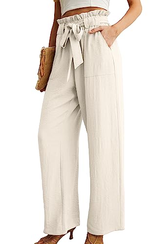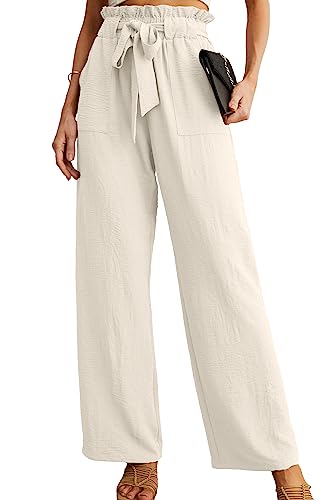 IWOLLENCE Women’s Wide Leg Pants with Pockets High Waist Adjustable Knot Loose Casual Trousers Business Work Casual Pants