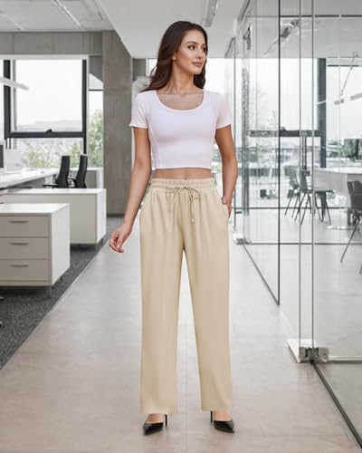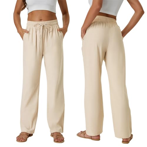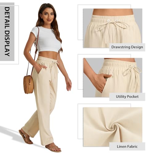 SEMARO Womens Casual Linen High Waist Pants Drawstring Loose Fit Summer Pants Trousers with Side Pockets