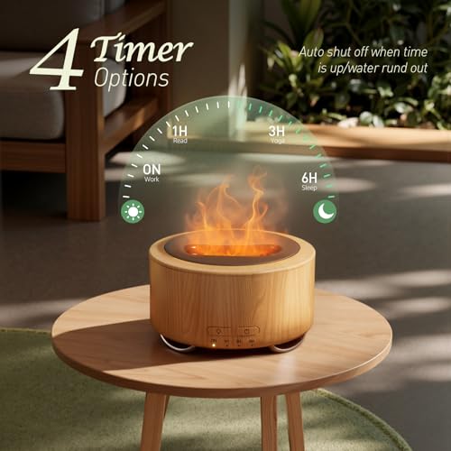 Fireplace Shape & Flame Light:Using a minimalist & small footprint & upscale fireplace design, and with the ambient flame lighting so that the mist is like a real flame, the whole humidifier is like a burning fireplace.It is not only a diffuser, can also be an ornament or night light. Suitable for bedroom, office, home, yoga, gaming, etc.It provides your life with a premium feeling and enhances the quality of life.
