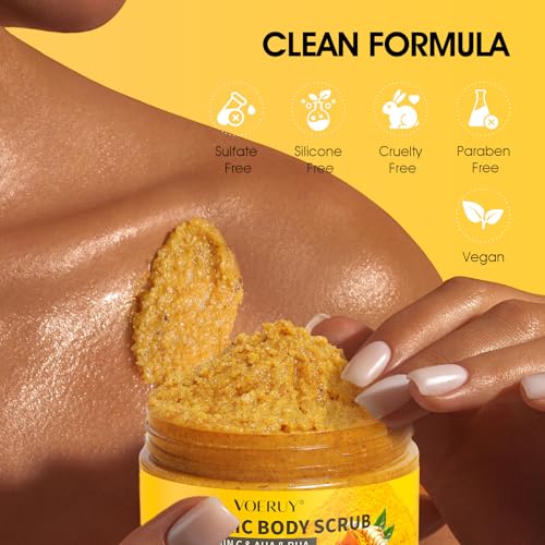 【FOR ALL SKIN SKIN TYPES】Keep your skin smooth, exfoliated and soft easily with the organic exfoliating body scrub. Perfect to use as a natural body exfoliator for dull skin. This turmeric vc body exfoliator with AHA&BHA is suitable for all skin types and sensitive skin for women and men