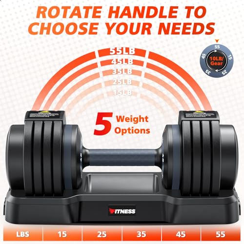 5 In 1 Weights Adjustable:Adjustable dumbbell weights set with 15-55 lb range in 10 lb increments via dial(each includes 15/25/35/45/55lb). Replace 5 traditional dumbbell sets for versatile home gym strength training