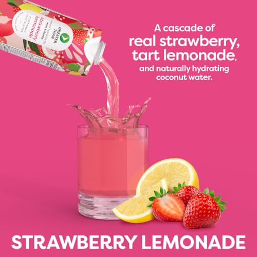 Greater Than Nutrient Hydration Beverage, Electrolyte Drink for Gut Health & Energy with Coconut Water, Vitamins, Gluten Free, Plant Based, Low Sugar, Strawberry Lemonade, 24 Pack