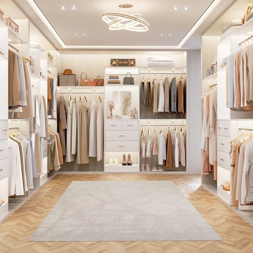 【Spacious and Fully Functional Closet Organizer】 The 3 hanging rod is perfect for long coats, dresses, skirts, slacks and sweaters, and the 4 drawers are spacious to store clothes, scarves, socks, undies and jewelry for concealed storage, besides the top shelves and storage shelves offer plenty of open storage for folded clothes, shoes, handbags, boxes, hats or anything else. The walk in closet system can holds up to 400 pieces of clothing, which make it easier to keep everything tidy and accessible.