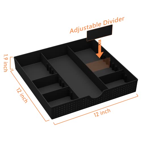 CAXXA 3 Slot Drawer Organizer with 4 Adjustable Dividers – 7 Compartments Junk Drawer Storage for Makeup & Vanity, Office Desk Supplies and Accessories, BLACK (2 pack)
