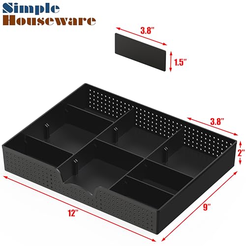 Simple Houseware Drawer Organizer Tray with 9 Adjustable Compartments, Black
