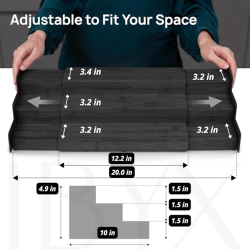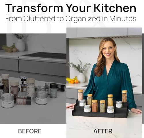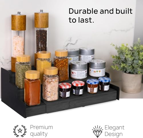 Ibyx Premium 3-Tier Spice Rack Organizer for Cabinet – Expandable Bamboo Spice Storage – Non-Skid Countertop Step Spice Shelf – Great for Kitchen Cabinet, Countertop, Cupboard, Pantry (Black)