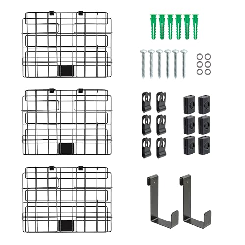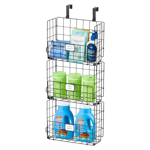 IRIS USA Over The Door Organizer, 3 Pack, Hanging or Wall Mounted Metal Wire Basket, Spice Rack Bathroom Cabinet Closet Laundry Pantry Door Organizer, Wall Baskets, Durable Easy Assembly, Black