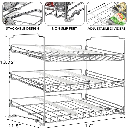 Simple Houseware Stackable Can Organizer Rack for Pantry/Cabinet – 11.5″ D x 17″ W x 13.75″ H, Holds 36 Cans, 3-Tier Can Food Storage Dispenser, Chrome