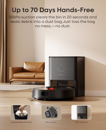 🐕【Tangle-Free Roller Brush & Self-Emptying Station】If you have a shedding pet or long hair, you know the struggle.The tangle-free brushroll design of the robot vacuum cleaner means you spend less time cutting and picking. Paired with a 3.5L large-capacity self-emptying station, you can avoid emptying the bin for up to 70 days—truly achieving seamless automated cleaning.