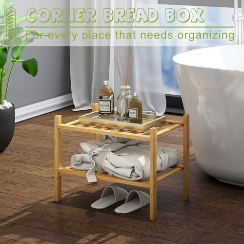 BMOSU 2-Tier Bamboo Small Shoe Rack Premium Stackable Shoe Shelf Storage Organizer for Hallway Closet Living Room Entryway Organizer (Natural Bamboo)