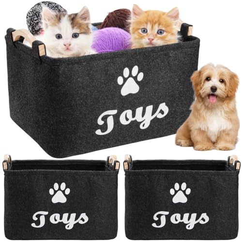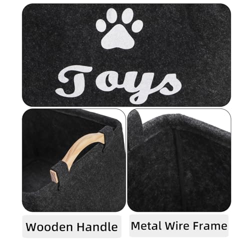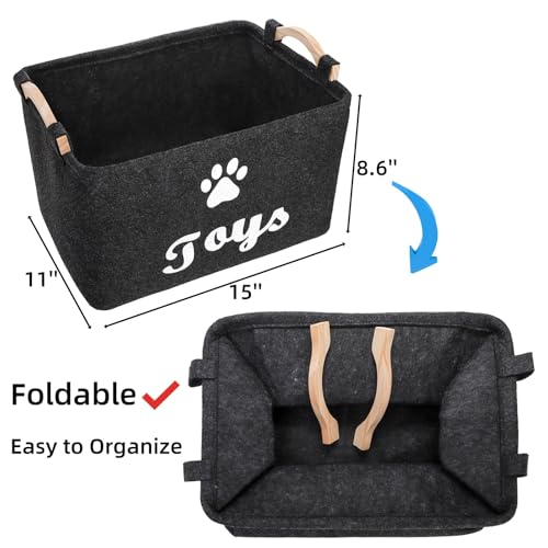 2 Pack Pet Toy Basket, Felt Collapsible Dog Toy Bin Box with Wooden Handles, Large Pet Supplies Storage Organizer for Toys, Blankets, Leashes, Clothing, 15″ x 11″ x 8.6”