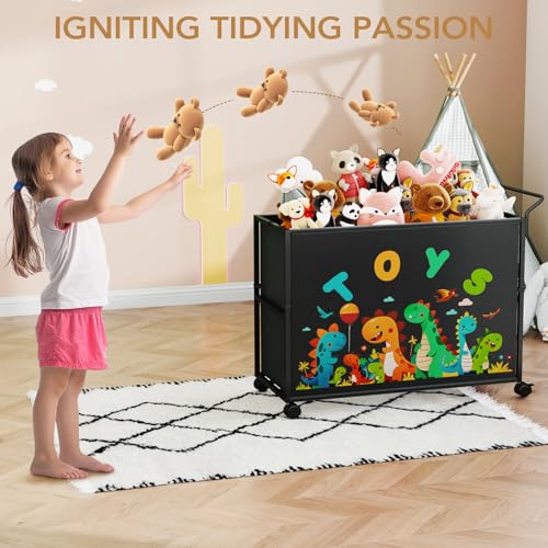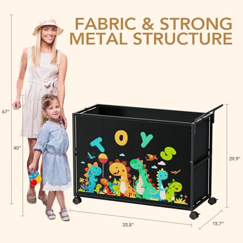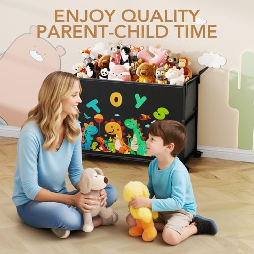 BBLIKE Large Toy Box for Kids – Extra Large Toy Chest with Wheels, Multi-Function Storage Organizer Bin Basket for Boys and Girls, Perfect for Bedroom, Living Room, Nursery, Black