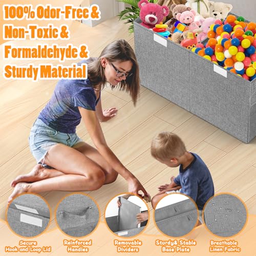 Large Toy Storage Box with Lid Divider, Sturdy Collapsible Toys Organizer Chest Kids Storage Bins Boxes Baskets for Boys, Girls, Nursery, Bedroom, Living Room, Playroom, 25″x13″x16″, Gray
