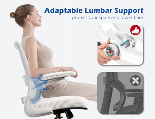 TRALT Ergonomic Office Chair – Desk Chair with Adjustable Lumbar Support Computer Chair – Mesh Comfy Chair with Flip-up Armrests – Gaming Chairs for Adults Home Office (Leather, White)