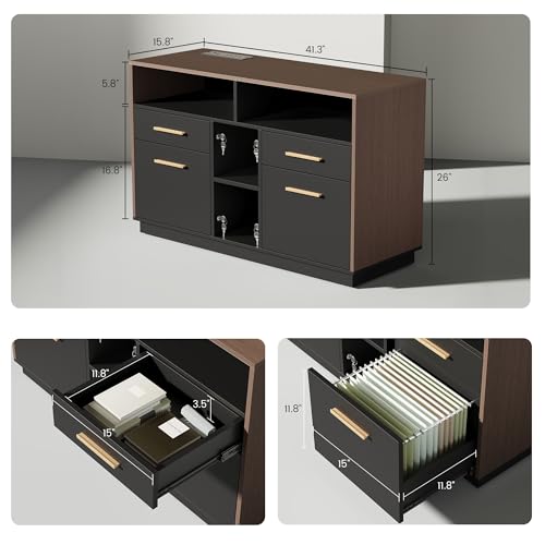 Powerful Storage System:The cabinet part of this executive standing desk has multiple open storage shelfs which is perfect for your books, file cabinet drawers for your office documents