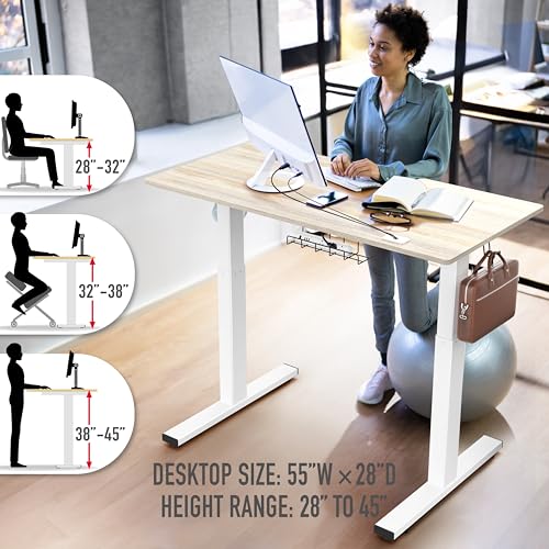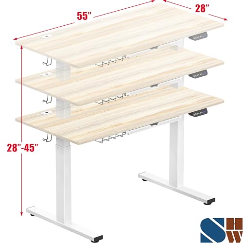 SHW 55 x 28 Inches Electric Height Adjustable Standing Desk with Drawer and Memory Preset, Maple