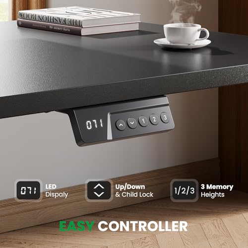 【Easy Controller & Height Adjustment】The L-shaped standing desk equipped with a smart memory controller, this desk allows you to preset 3 custom heights (27.5″ – 45.7″) for one-touch access to your ideal sitting/standing height with seamless transitions. The exclusive child safety lock prevents accidental operation. SIAGO standing desk is your ultimate solution for maintaining healthy work habits in the comfort of home.