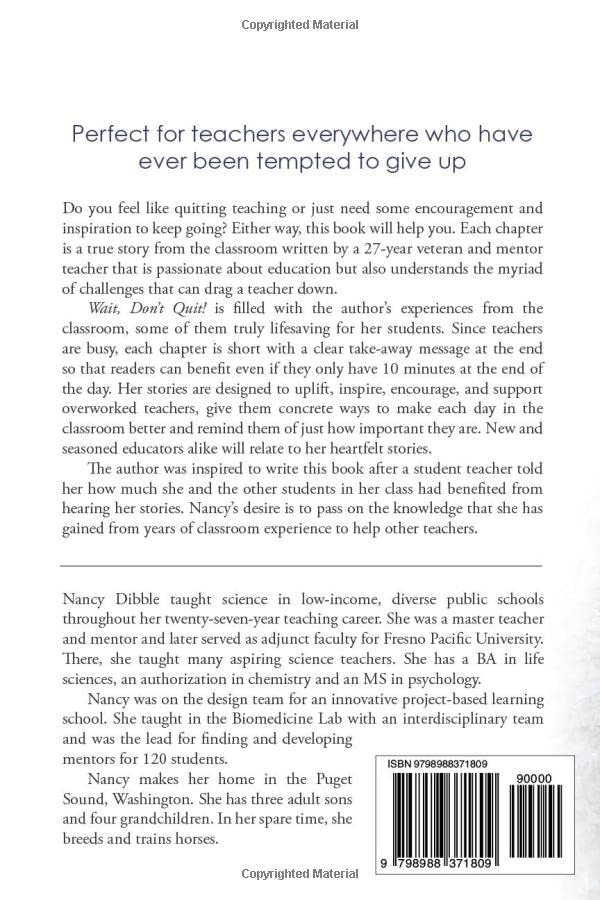 Be the first to review “Wait, Don’t Quit!: True Stories to Empower and Encourage Teachers Paperback – May 10, 2023” Cancel reply